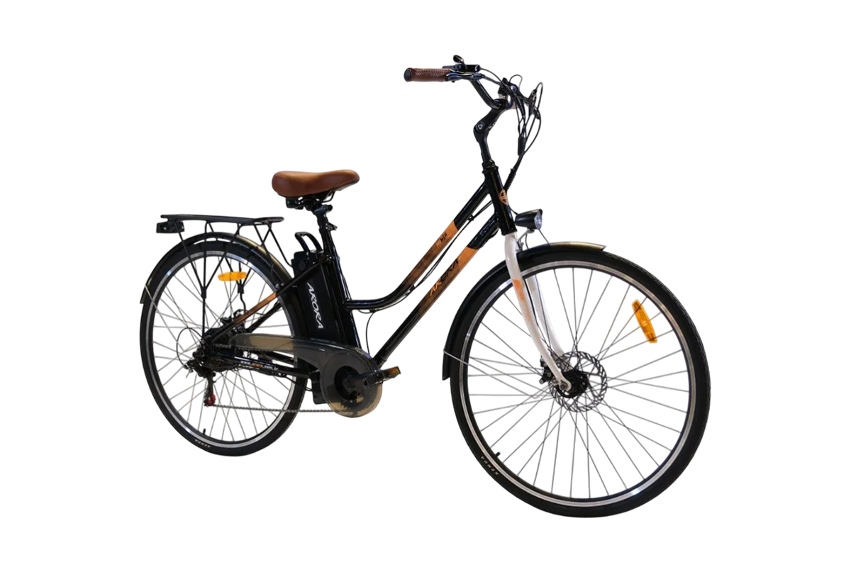 Arora Münih, teknoloji ile performansı bir araya getirerek sürücülere en üst düzey konfor ve keyifli bir sürüş deneyimi sunar. 250 Watt gücündeki motoru, size destek olurken, Shimano 7 vitesli şanzımanı da her türlü arazi ve yol koşulunda rahat bir sürüş sağlar. 36 V 10Ah gücündeki aküsüyle ise 25 km/h hıza kadar ulaşabilirsiniz.